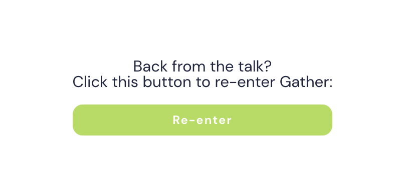 After the lecture session on Zoom has ended (or you left for having a break), just click on Re-enter to get back to Gather.Town.